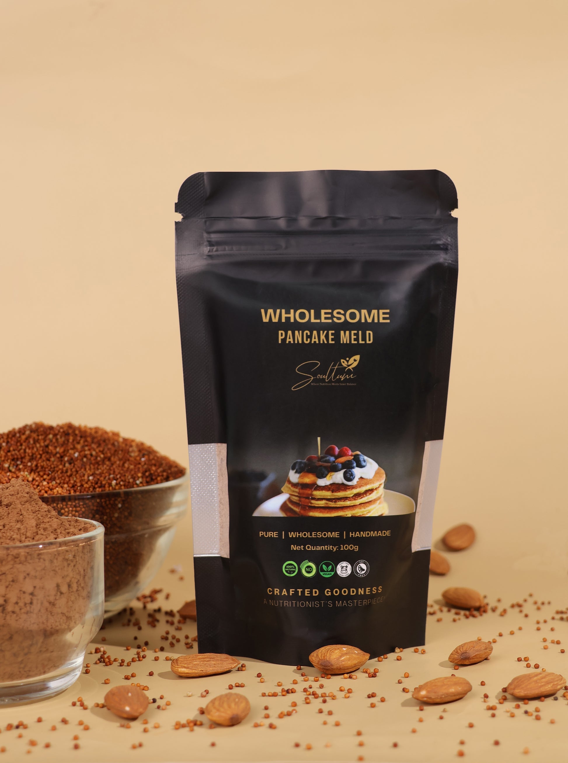 Soultum’s Wholesome Pancake Meld is a healthy pancake mix made with nutritious grains and nuts. It provides long-lasting energy and essential daily nutrition. Quick and easy to prepare for busy mornings. Perfect for both kids and adults who love healthy food. A delicious way to start your day right.